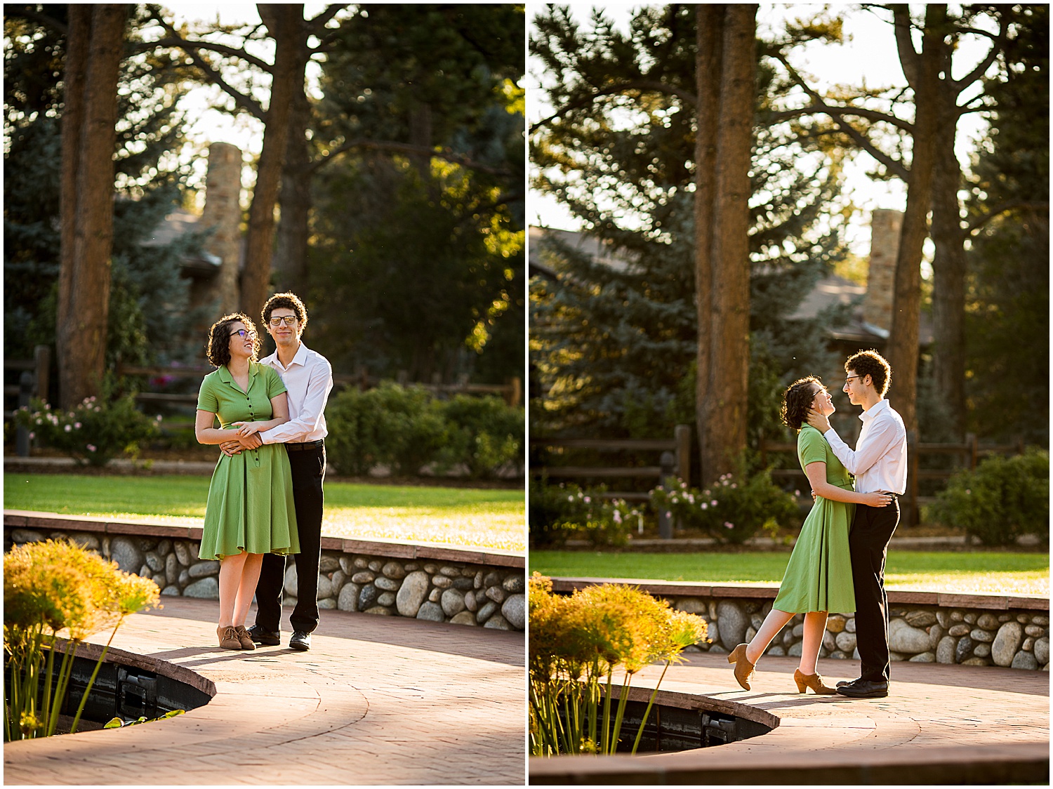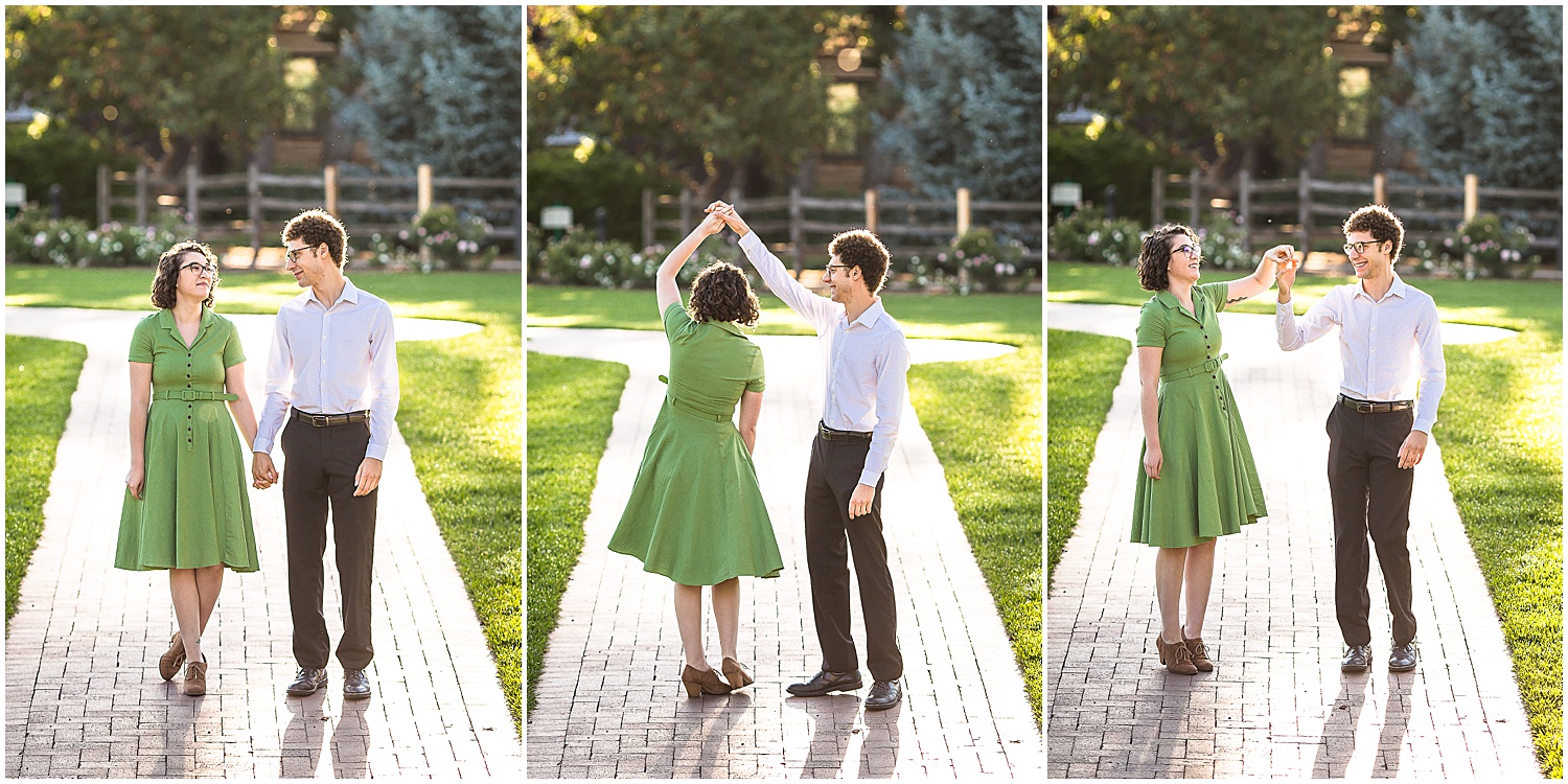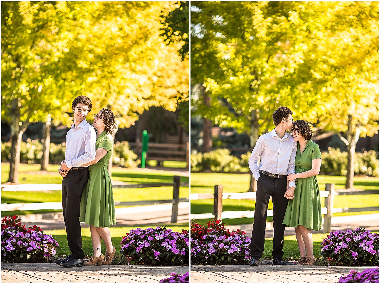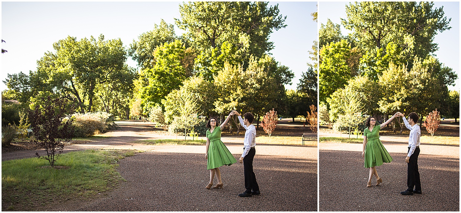 It was the week of engagement photos this week! This engagement session took place in Littleton Colorado at the Hudson Gardens and Event Center. Eli and Yuko really wanted to avoid the “rustic Colorado” look and wanted a garden setting. Luckily the Hudson Gardens in Littleton Colorado was the perfect location for their engagement photos. The gardens are still bright and colorful and some of the leaves are letting us know that fall is coming.