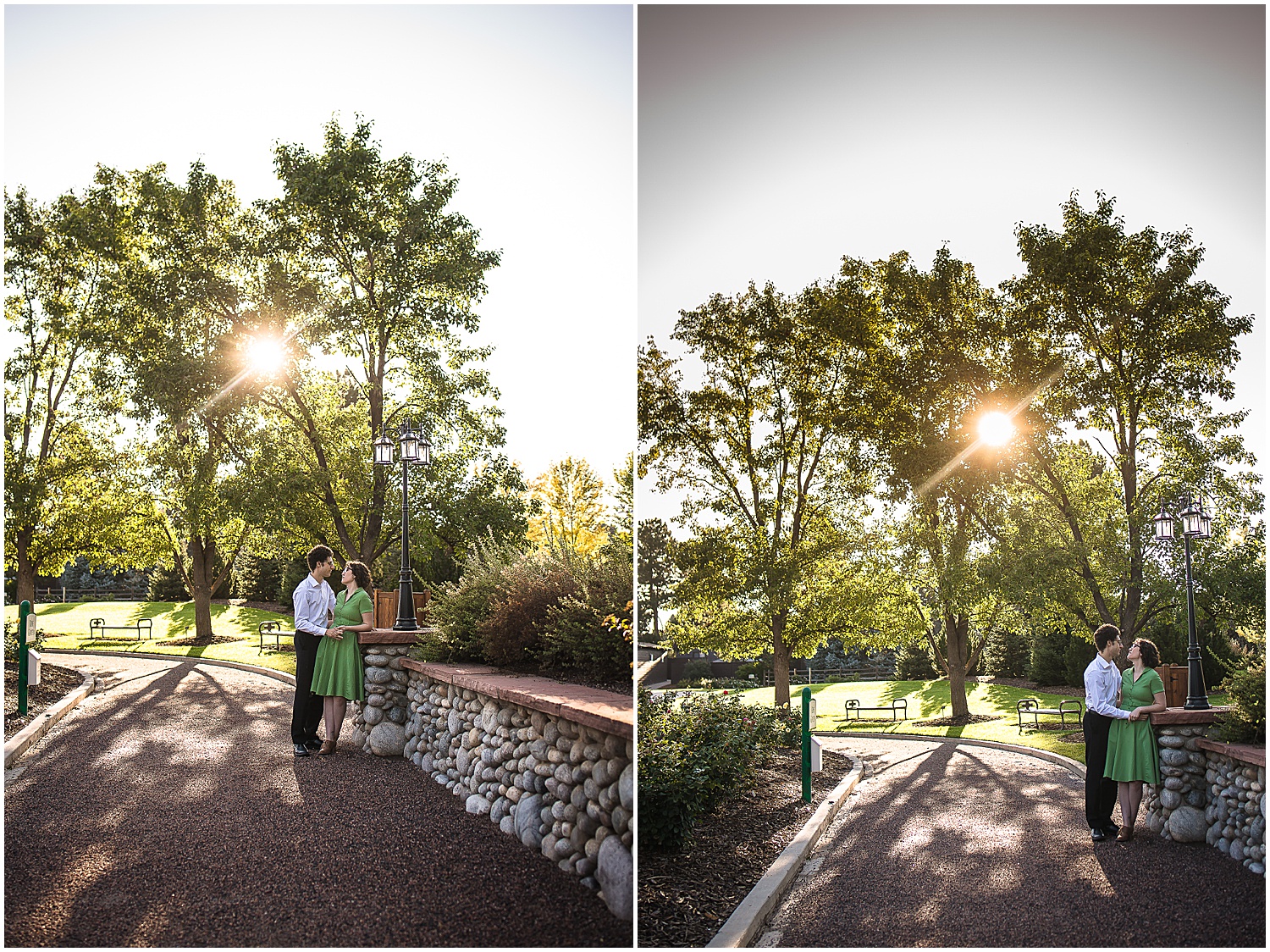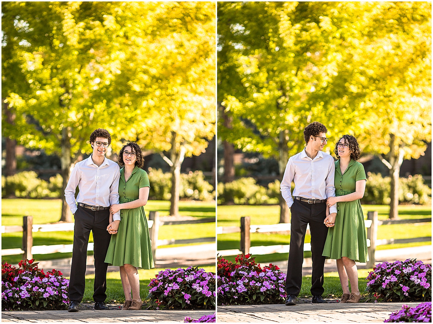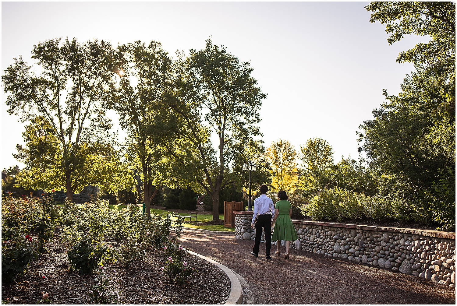 It was the week of engagement photos this week! This engagement session took place in Littleton Colorado at the Hudson Gardens and Event Center. Eli and Yuko really wanted to avoid the “rustic Colorado” look and wanted a garden setting. Luckily the Hudson Gardens in Littleton Colorado was the perfect location for their engagement photos. The gardens are still bright and colorful and some of the leaves are letting us know that fall is coming.
