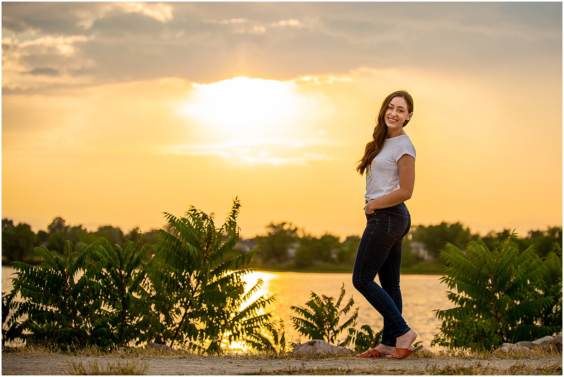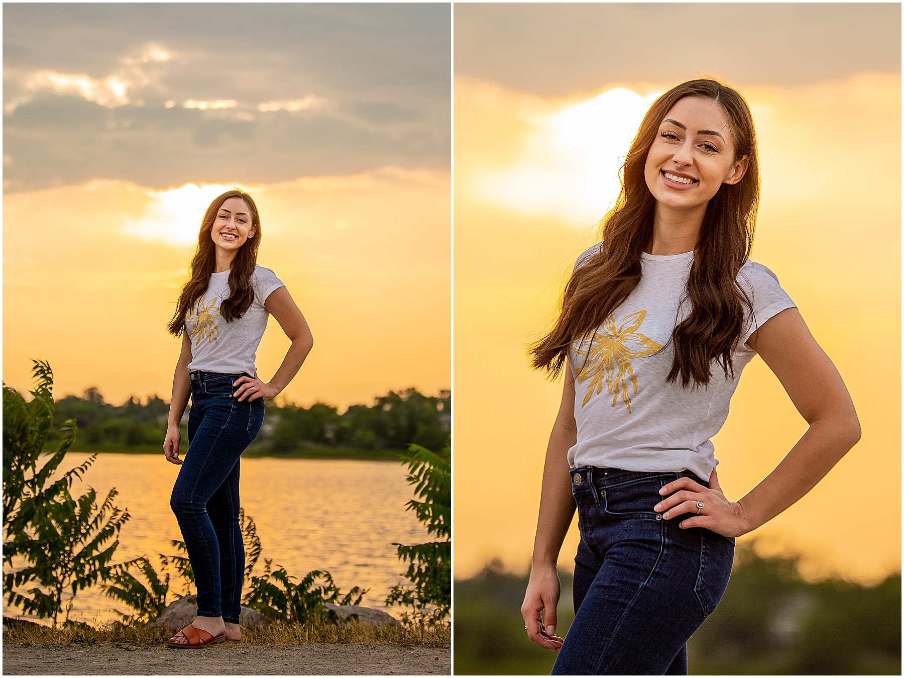 I couldn’t be more happy with how her portraits turned out. Dana is truly stunning and was so fun to work with. We were blessed with a gorgeous golden hour and a true Colorado sunset. If you can believe it, we almost left! Quickly, we decided to head up to the water and check out the lake one last time. I am so happy we did. Would you check out those head shots?? Not to mention the full portraits with that Colorado sky in the background! It doesn’t get much better than this.